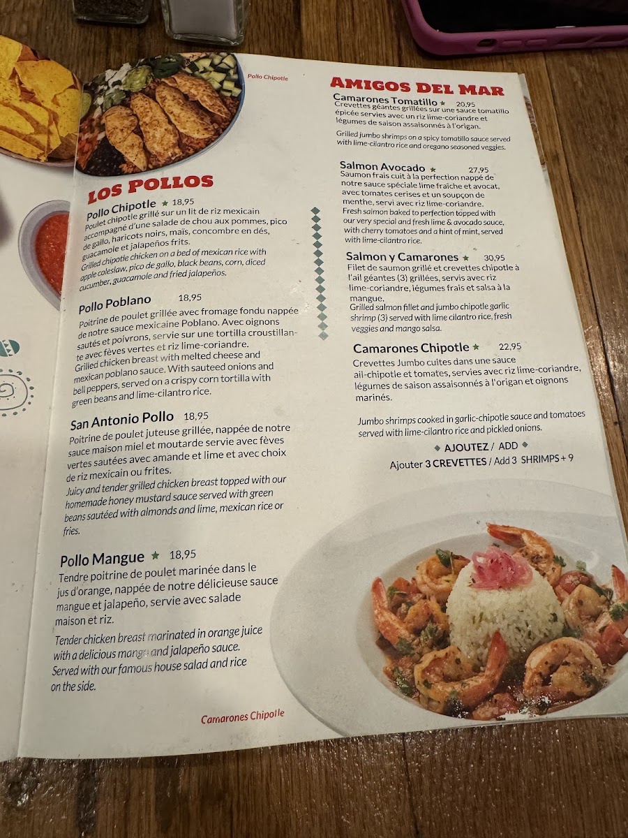 Welcome to 3 Amigos (Brossard), where the vibrant flavors of Tex-Mex cuisine come alive! Located conveniently at 5605 Taschereau Blvd, Brossard, this lively eatery draws locals in with its welcoming ambiance and friendly service. The menu boasts an array of enticing options, starting with the ALITAS EN FUEGO—crispy, Mexican-spiced chicken wings served with a tantalizing salsa that packs a punch.
